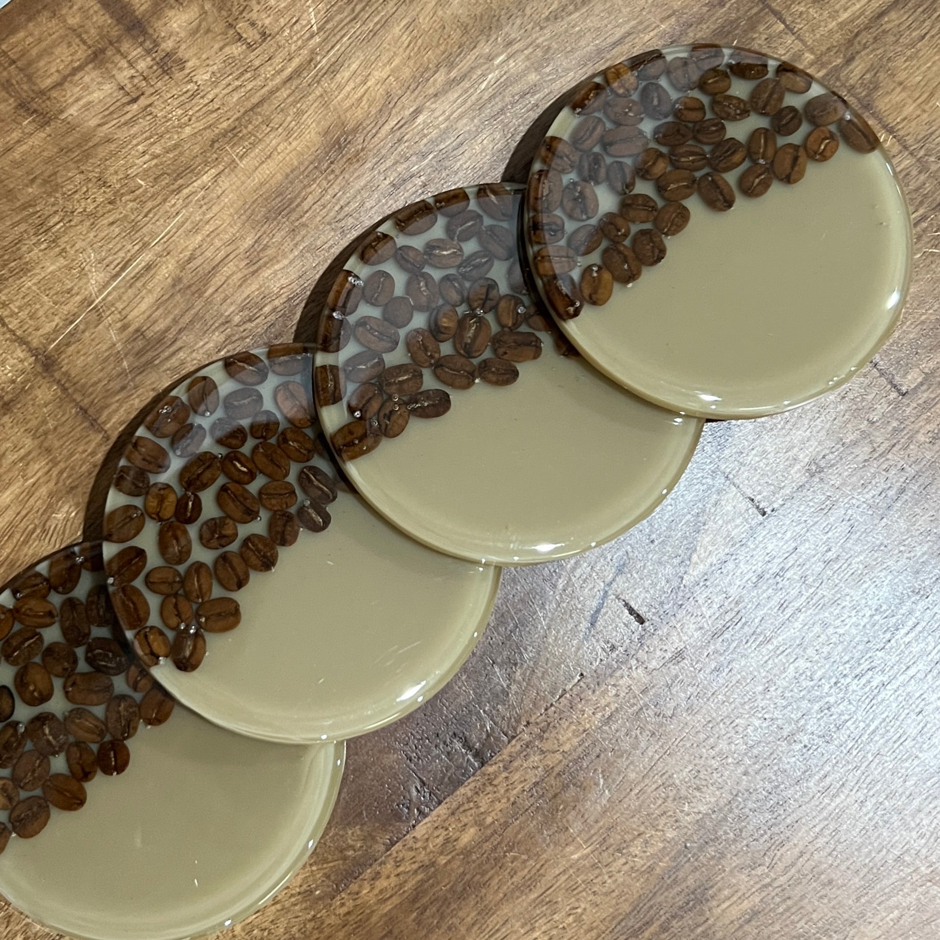 Coffee Bean Resin Coasters – Handmade Round Set of 4 with Real Beans